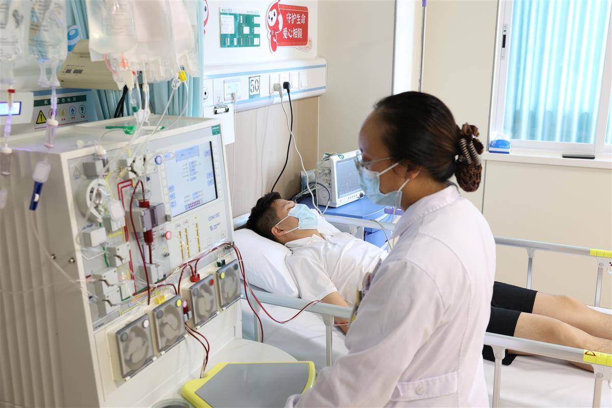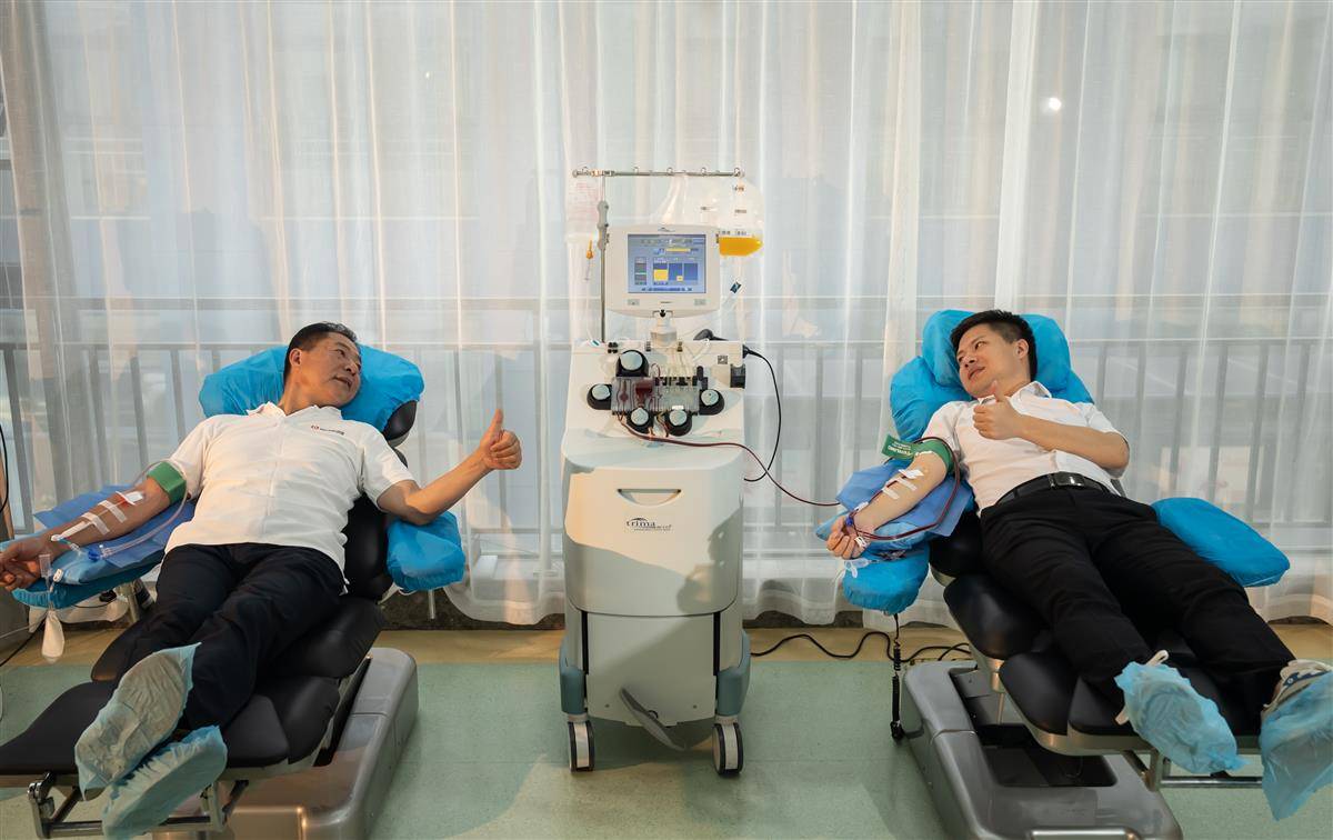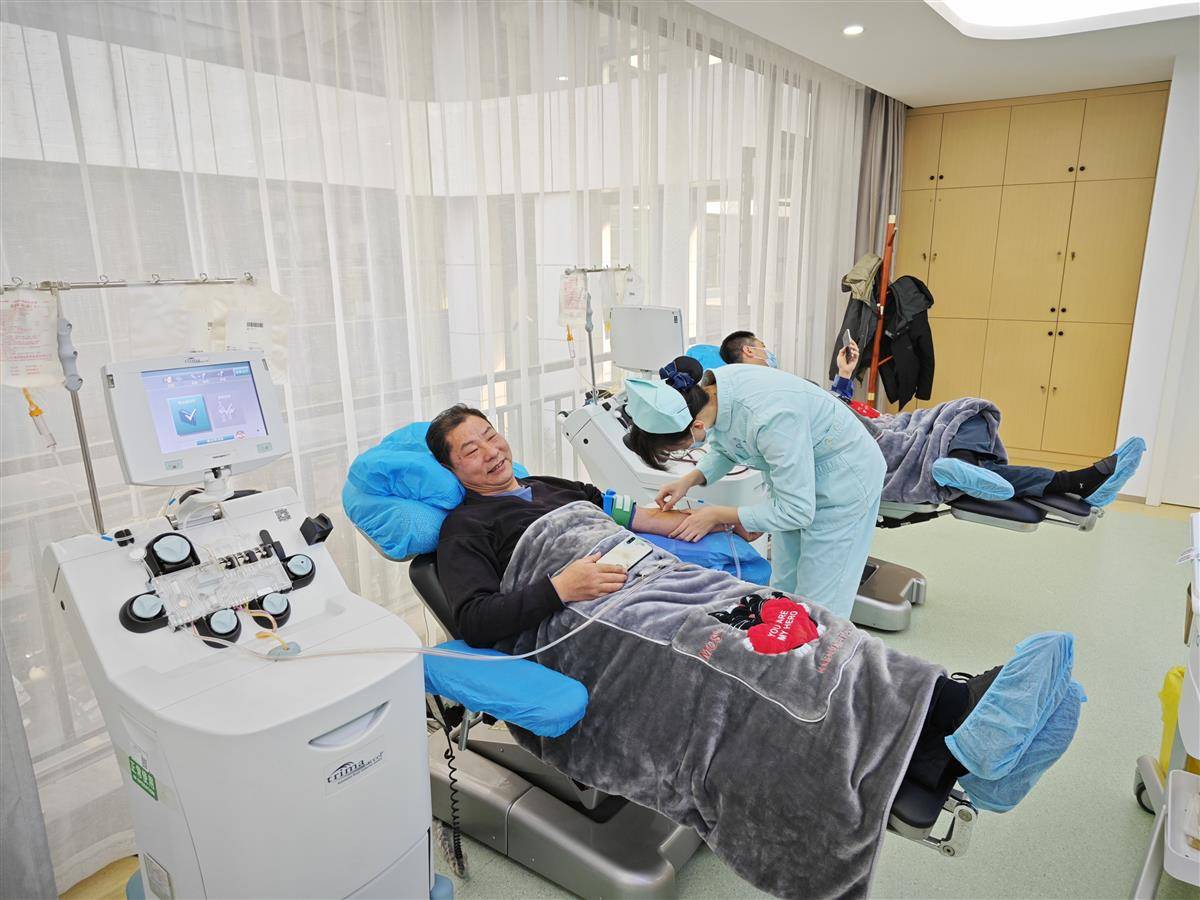 杨天(化名)正在采集造血干细胞。记者汪蕾摄