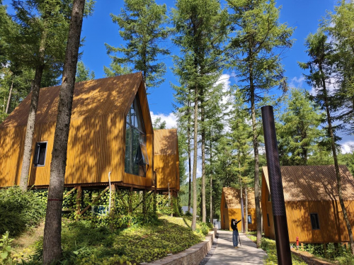 据了解,度假区森林覆盖率高达87% - 90%,堪称天然的“绿色空调房”。在这里,每一口呼吸都清新宜人,仿佛在给肺部做一次深度清洁。长岭之下康养酒店推窗即见满眼翠绿,木屋酒店让游客躺在床上就能仰望星空,家庭出游还可选择亲子房型,满满的度假氛围让人倍感惬意。游客可以乘坐15分钟的森林小火车穿越林海,花香扑鼻、山风拂面,随手一拍便是宫崎骏动画般的梦幻场景,与大自然来一场亲密接触。(图片由王家栋授权提供)