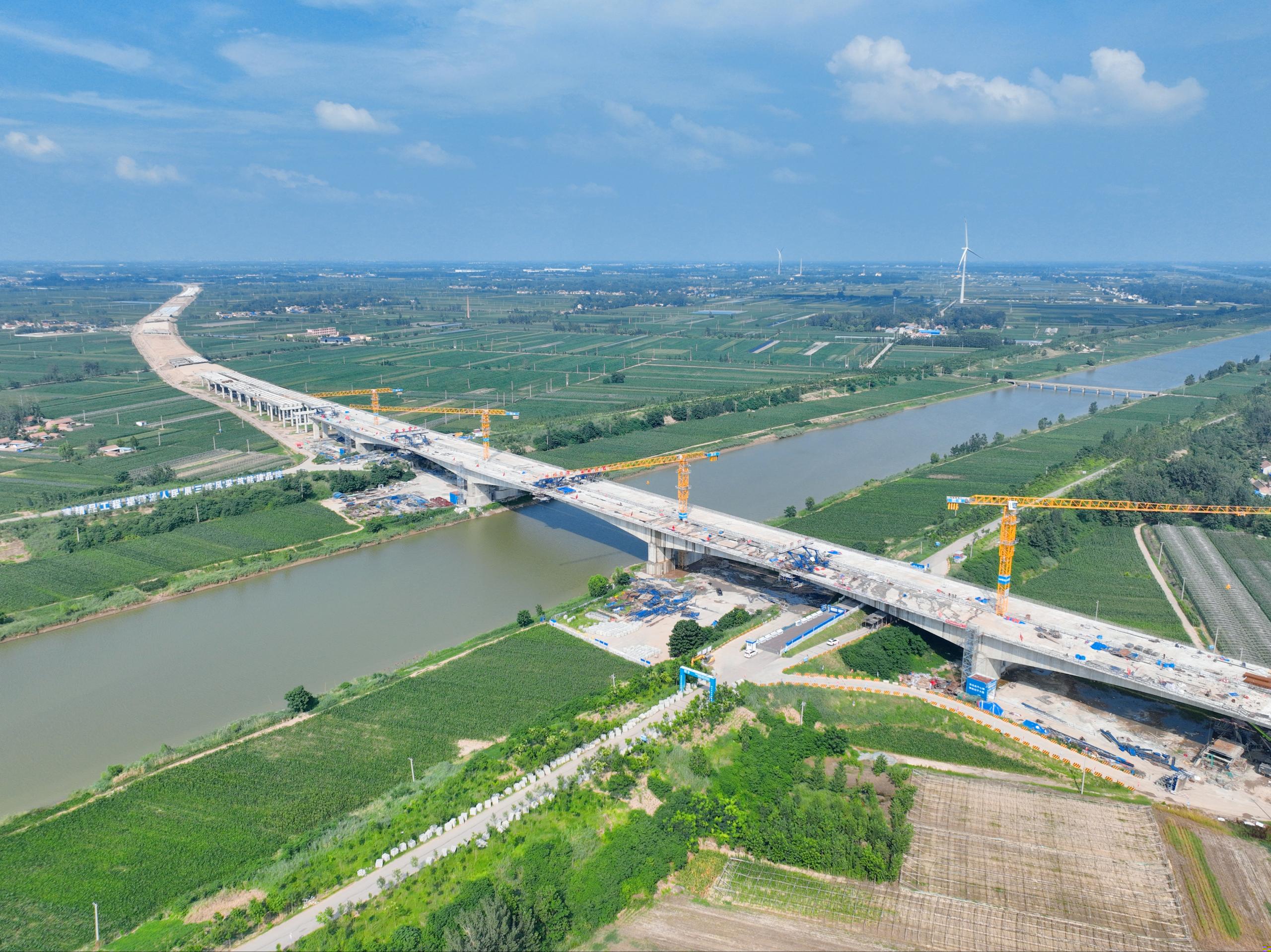 济商高速(菏泽段)一标段全长31.45千米,采用双向六车道高速公路标准建设,设计速度为120公里每小时。标段内共设有桥梁63座,其中东鱼河特大桥全长1301米,桥宽33米,主桥上部采用五跨一联的变截面连续箱梁设计,以挂篮悬臂浇筑施工,下部结构为矩形承台、矩形墩柱,是目前山东省在建高速公路中跨度最大的预应力混凝土连续梁桥。