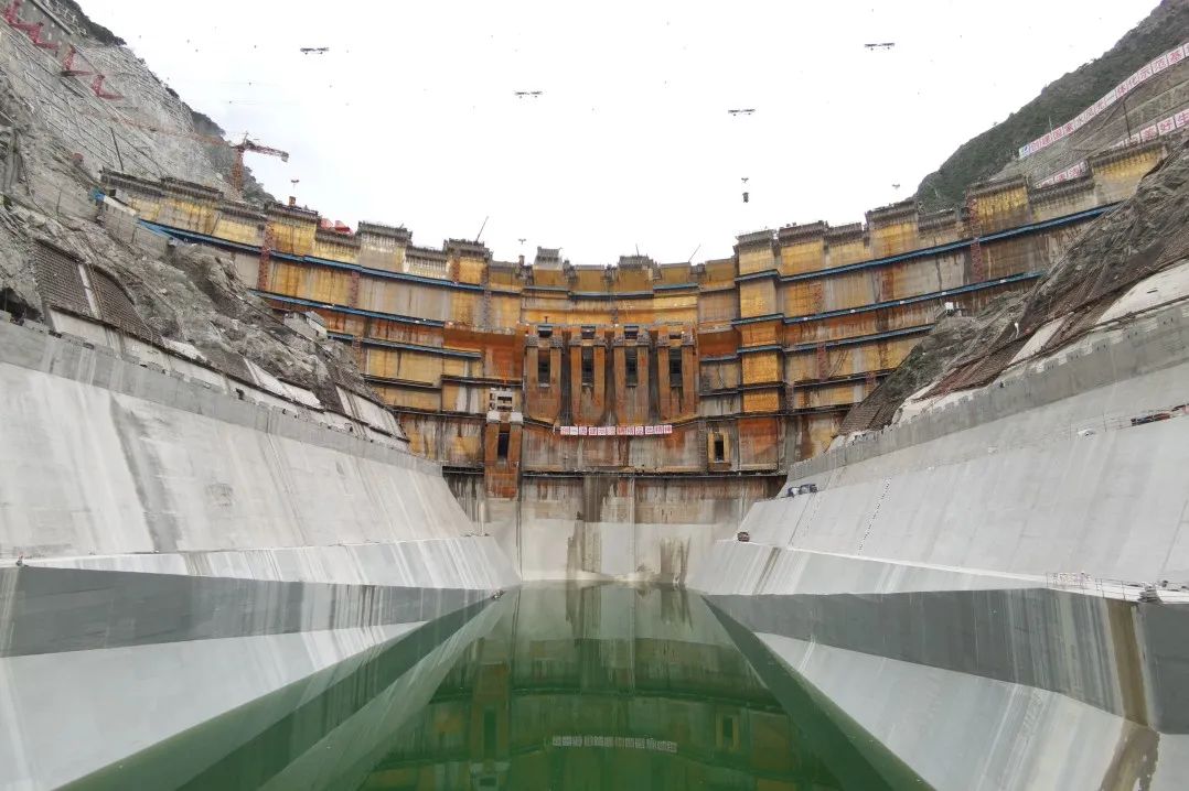 当前,这座设计总量251万方的超级大坝已完成235万方混凝土浇筑,达总工程量的93.6%。最大坝高锁定217米,目前最高坝段已挺立至2879.5米高程。