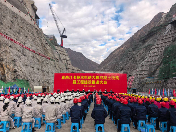 12月30日,雅砻江卡拉水电站大坝混凝土浇筑暨工程建设推进大会顺利召开,水电七局参建的雅砻江卡拉水电站大坝首仓碾压混凝土开始浇筑,标志电站从基坑开挖阶段正式转为大坝混凝土浇筑阶段。