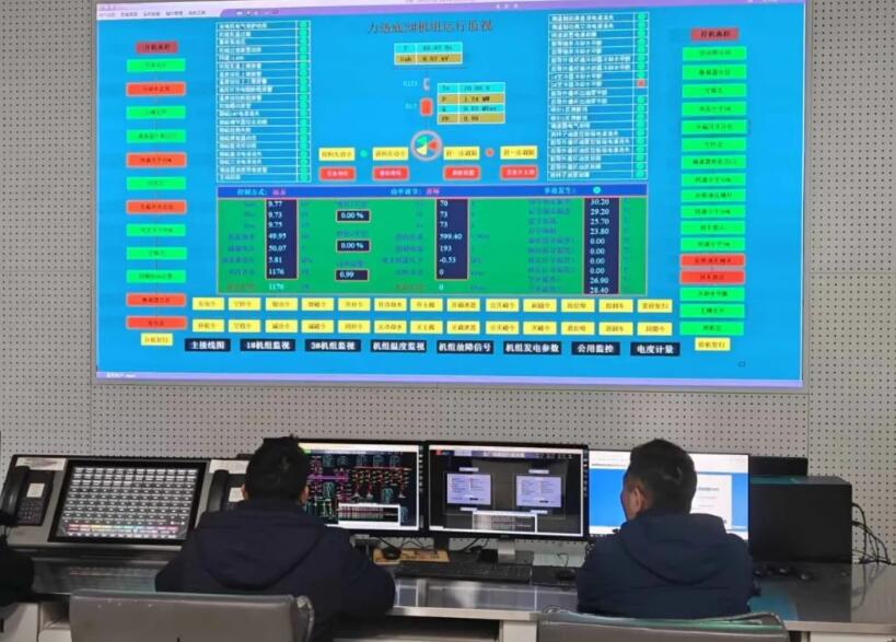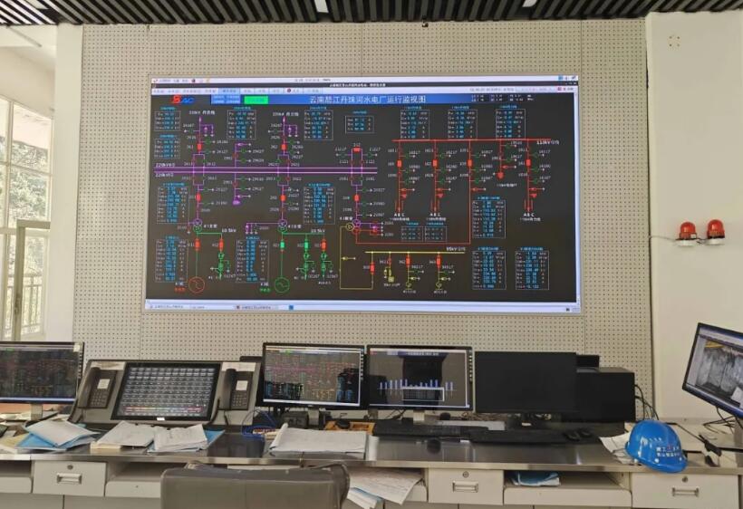 恒远水电集控调度中心设于丹珠河一级电站中控室,接入丹珠河一级、二级、三级电站、东月各一级、二级电站5个站。集控中心新增一台P2.5全彩显示屏,载入五座电站共13台水轮发电机组、主变压器、110kV输电线路等设备运行状态和开关状态、有功功率、无功功率、功率因数、电压以及四座共调电厂组建的集控工作站相关信息点,成为监控全局的“智慧眼”,替代大量传统人工巡检,提高应急响应能力。