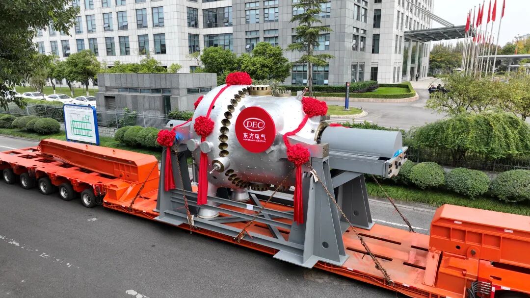 东方汽轮机为机组研制的C630R转子突破国外高压转子传统技术路径,采用全新成分设计思路,性能指标达到世界先进水平。历经八年研制的1450毫米汽轮机叶片,创下国内全转速汽轮机叶片长度新纪录。采用的带功率平衡发电机双机回热系统,通过显著提高回热抽汽能级利用效率,精准解决了高参数机组换热温差增大引发的换热不可逆损失问题,在提升机组整体效率的同时,进一步增强了运行的可靠性与经济性。