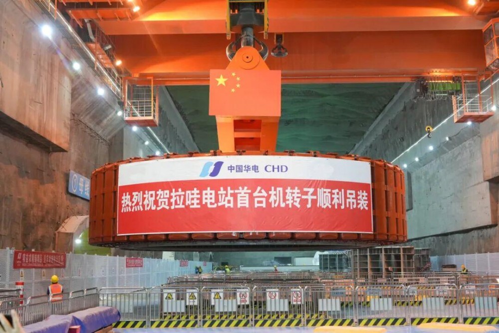 拉哇水电站位于四川省巴塘县与西藏自治区芒康县交界的金沙江干流,是国家“十五五”规划重点建设的金沙江上游水风光一体化基地重要组成部分,总装机容量200万千瓦。本次吊装的首台机组转子直径13.43米,高3.10米,总重量约1007吨,是拉哇水电站机组重量最大的部件。