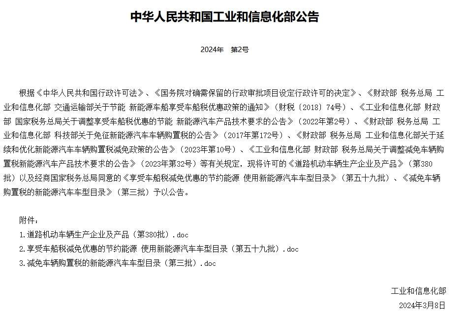 中华人民共和国工业和信息化部公告2024年第2号,道路机动车辆生产企业及产品(第380批),第一部分新产品汽车生产企业第85条如是表述:同意比亚迪汽车工业有限公司深圳新能源乘用车工厂迁址扩建,生产地址为广东省深圳市深汕特别合作区红海大道1888号。比亚迪汽车工业有限公司“深圳市坪山新区坪山横坪公路3001号”生产地址不再生产乘用车产品。