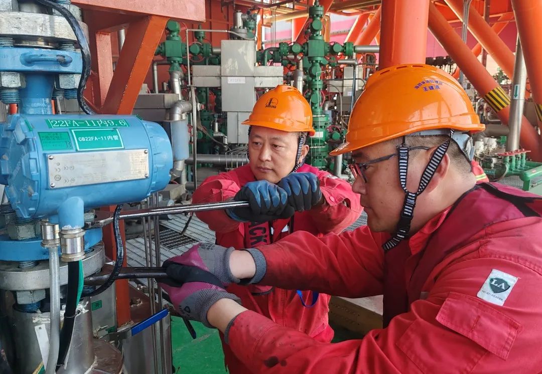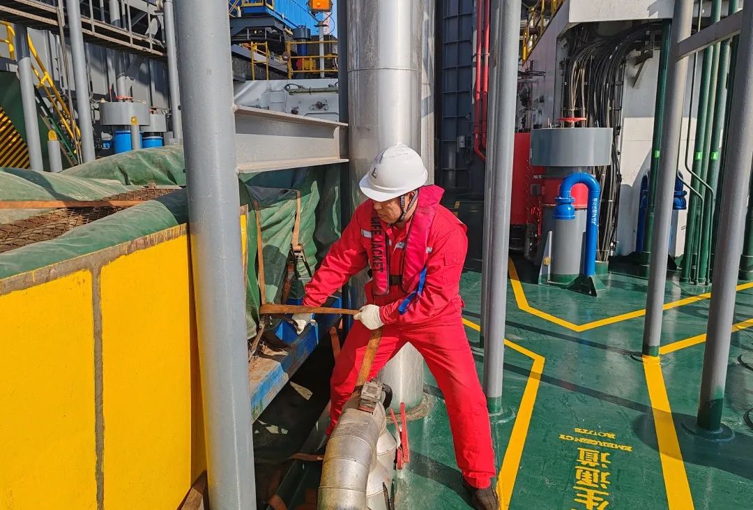 海一管理区积极落实大风防御工作,组织海上员工加密排查海管海缆、工艺管线等重点设备设施,做好室外物品捆扎固定,落实岗位值班人员及应急物资准备,强化电力、自动化及视频监控,及时掌握设备及油水井运行参数。在CB11N平台,安全主任监督王睿、员工姜宁巡检发现11NC-P2井套压异常,经数据比对判定压变故障,顶风更换后加强监测,并全面复核其他油井数据,确保海上平台安全平稳生产。