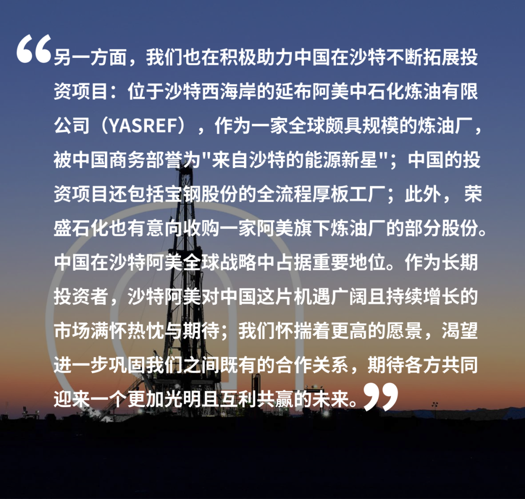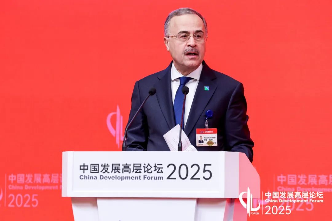 2025年中国发展高层论坛于3月23日至24日在北京钓鱼台国宾馆隆重举行。在24日举行的专题研讨会上,沙特阿美公司总裁兼首席执行官阿敏·纳瑟尔(Amin H. Nasser)发表重要演讲时强调: