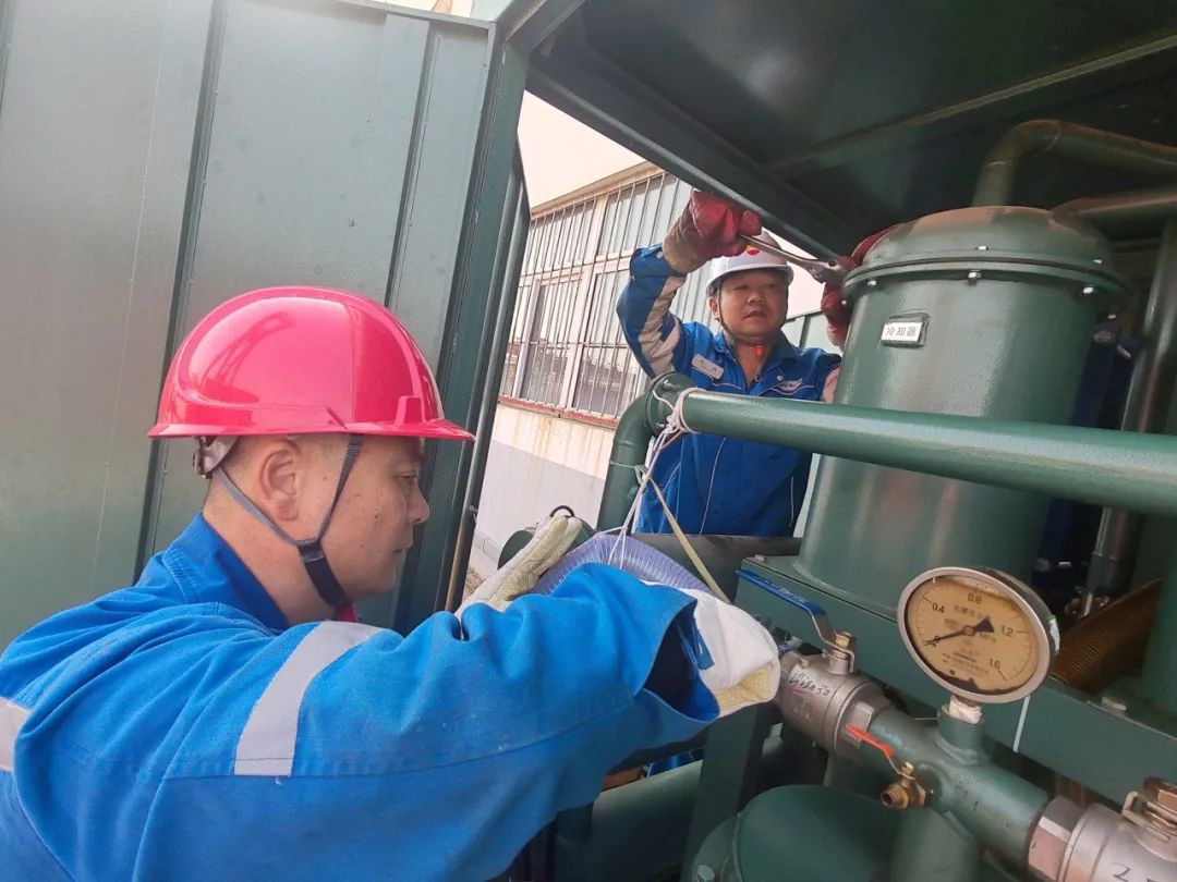 锚定“技术降本、资源再生”目标,组建专业维修团队开展滤油机“全链条”修复,对油泵电机、真空泵电机、加热装置以及电器控制部分等关键部件进行逐一排查和修复、更换所有滤芯,确保设备每一个环节都达到最佳运行状态。经过不懈努力,滤油机终于“重焕生机”,各项参数均达到技术标准,顺利通过性能测试。下步计划利用该设备对库存的70余桶废液压油进行深度过滤和重复利用,预计可节省废弃油料处置费用10.5万元,年均减少液压油购置费用24万元,真正实现资源的高效利用和成本的有效控制,推动降本增效从“单点突破”向“系统创新”全面升级。