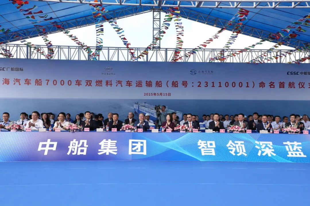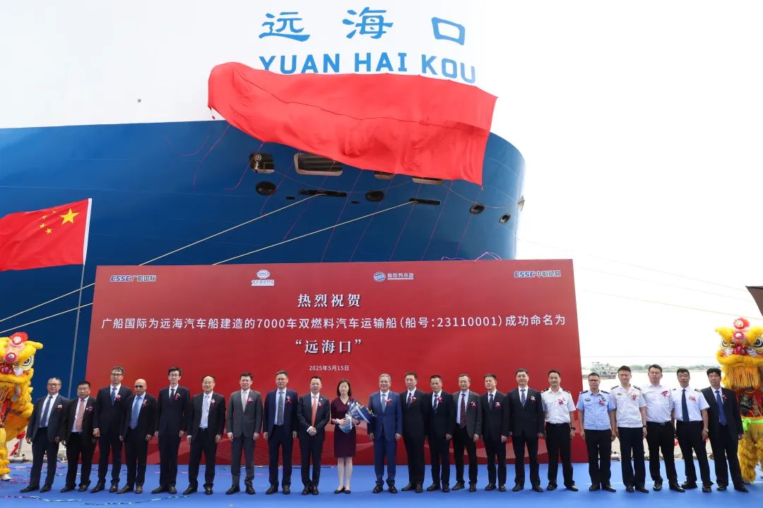 5月15日,我国汽车出海运输船船队再添新成员:由中远海运特运旗下广州远海汽车船运输有限公司投资、中船集团广船国际建造的全国最大光伏能源+LNG双燃料汽车运输船“远海口”轮,在广州南沙正式命名并交付首航。
