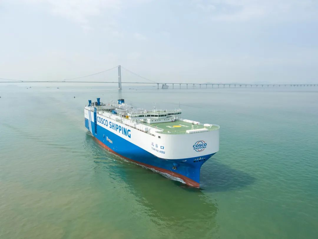“远海口”轮是首艘完全满足中国船级社《新能源汽车滚装运输安全技术指南》的船舶,该指南由我国自主制定,以更高规范标准引领行业健康发展。中远海运深度参与该指南编制工作,“远海口”轮以“标准制定-技术落地-运营示范”全链条实践,成为国内首艘获颁“NEV Carriage”附加标志的PCTC。