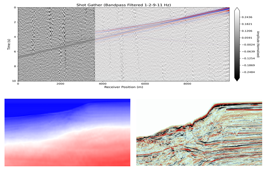 二维/三维声波方程正演计算效率提升4-6倍,全波形反演整体效率提升超10倍,初始模型依赖程度降低40%,为FWI技术的工业化应用扫清了关键障碍。未来有望将三维FWI处理从“数月级”缩短至“周级”,5分钟智能反演可完成传统集群数小时工作量。 使高精度成像计算更易获得,实现声波高精成像算力平权。