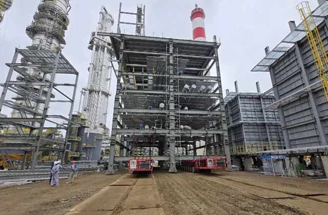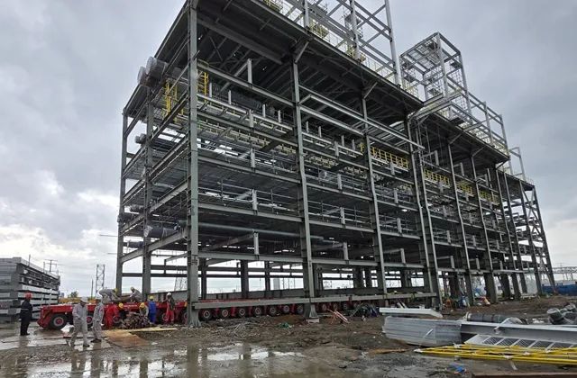 中石化广州工程公司总承包建设的北方华锦项目芳烃联合装置总长72米、宽16米、高34米、总重1200吨的三个管廊模块,通过SPMT(自行式模块运输车)的整体运输、整体顶升,全部精准就位,标志着公司在管廊模块化施工方面取得新突破。