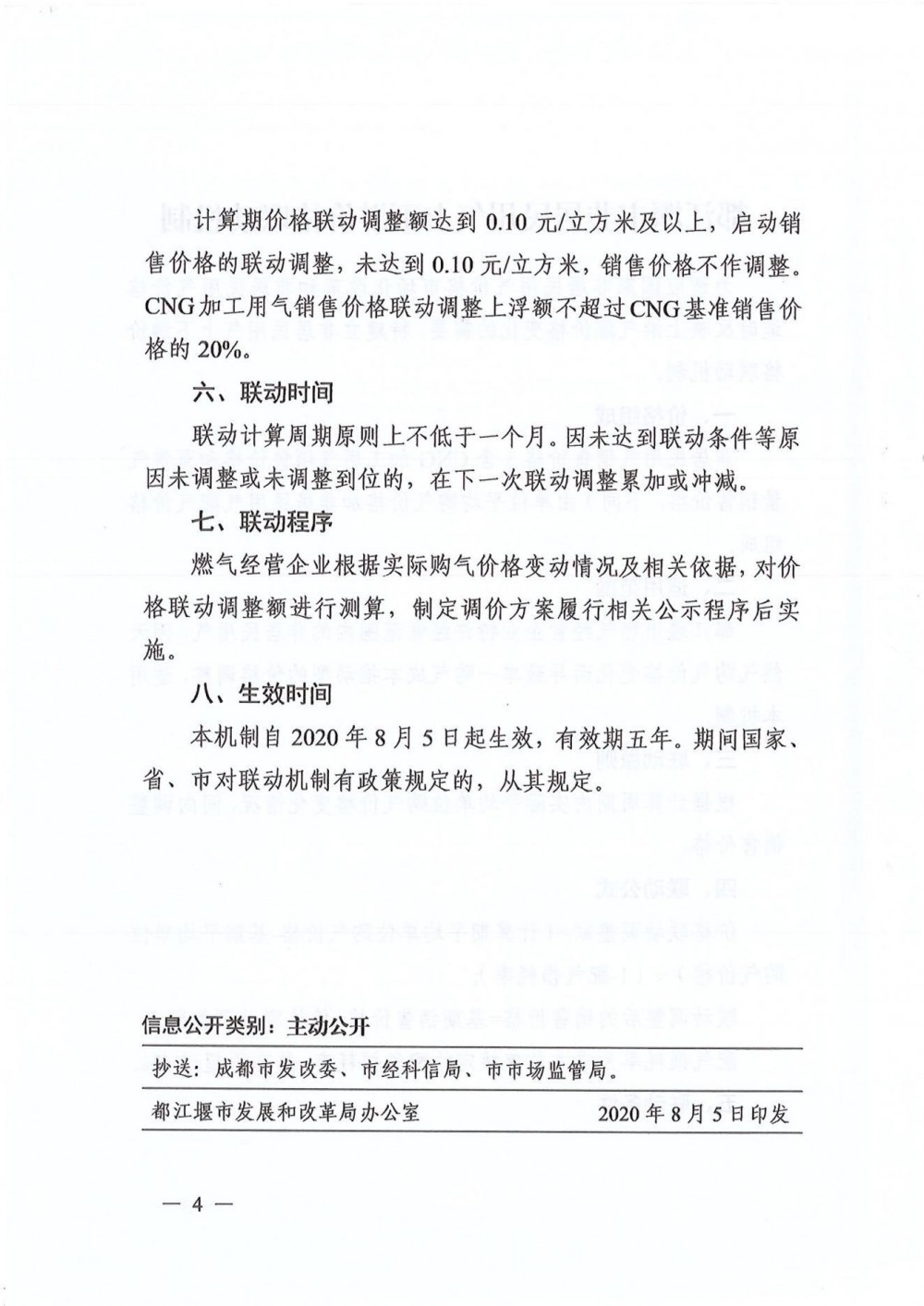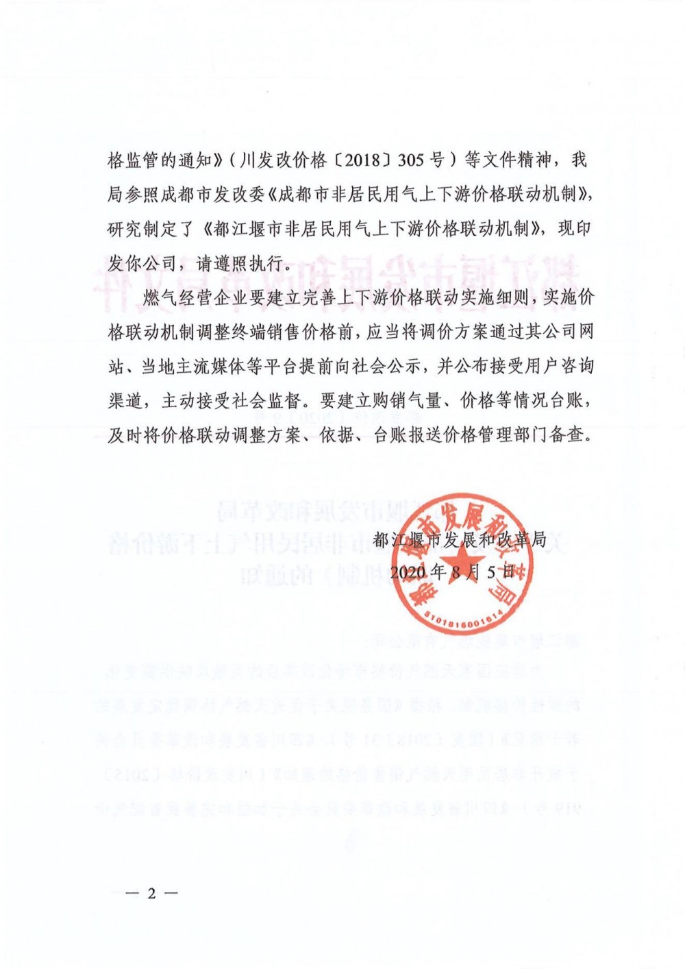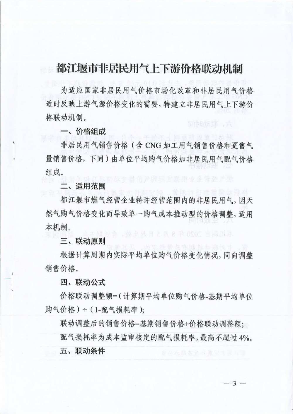 (都发改价[2020]9号--关于印发都江堰市非居民用气上下游价格联动机制的通知