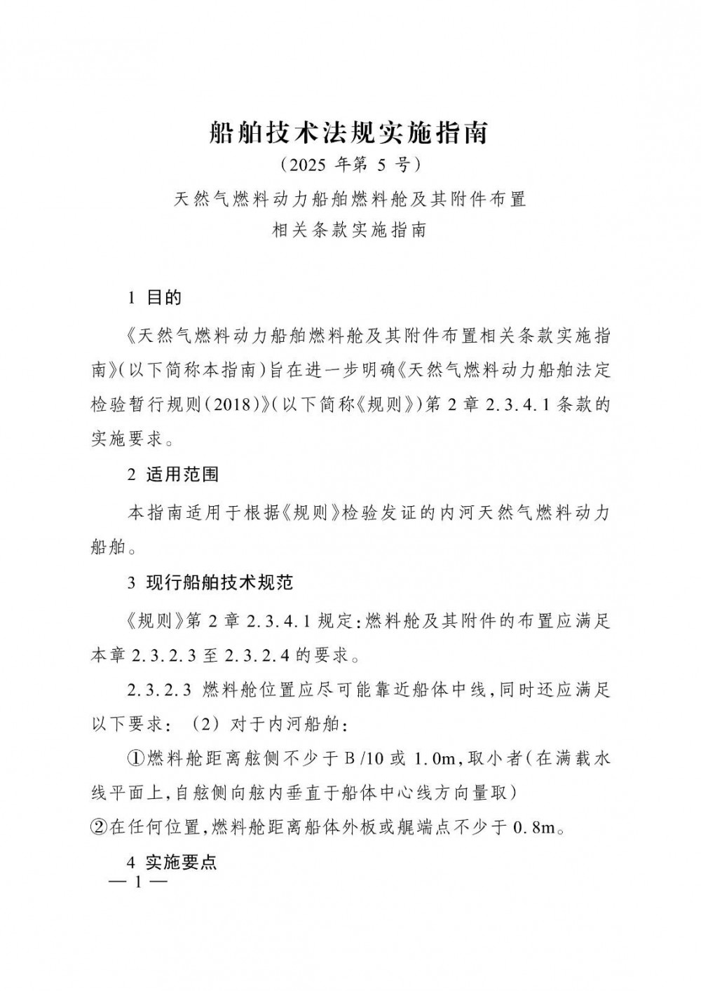 为保障天然气燃料动力船舶安全,进一步明确《天然气燃料动力船舶法定检验暂行规则(2018)》2.3.4.1条款实施要求,我局制定了《天然气燃料动力船舶燃料舱及其附件布置相关条款实施指南》(船舶技术法规实施指南2025年第5号),现予发布。本指南自发布之日起实施。