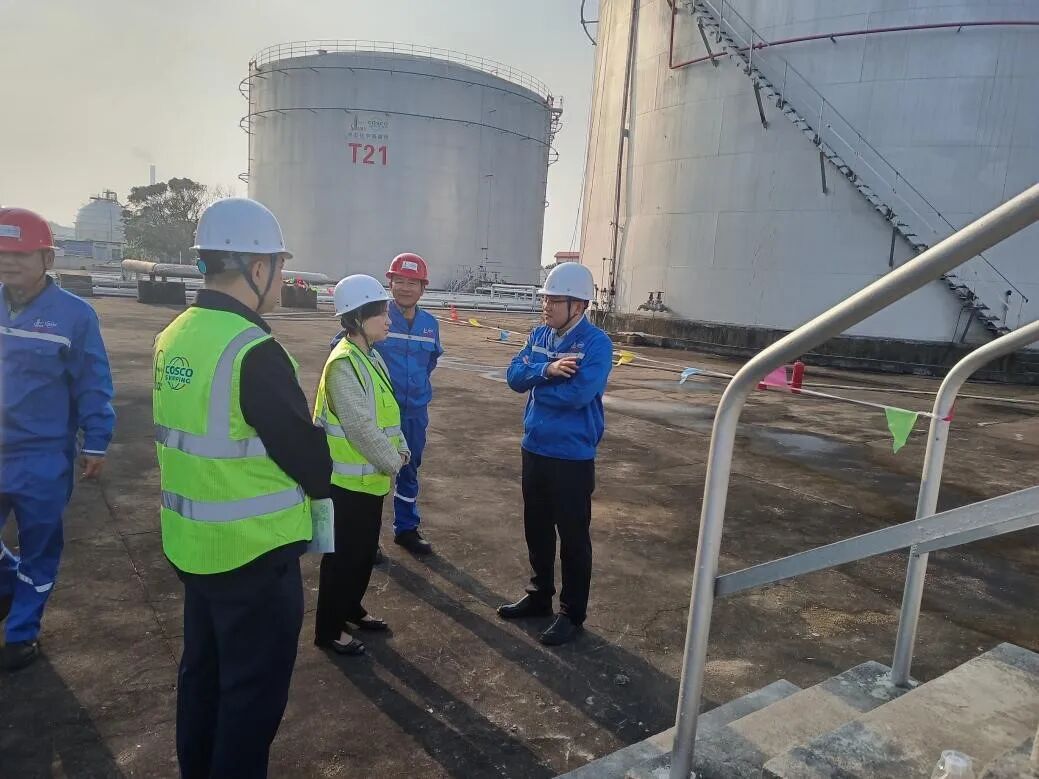 此次检查坚持“内外协同、查改并举”,在积极配合地方安全主管部门联合检查的同时,深化内部自纠自查,全力保障生产经营稳中有进。检查组深入作业现场,重点督查了动火作业、码头船舶装卸等关键环节的安全管控与制度执行情况。检查组要求,全体人员必须时刻保持高度警觉,通过常态化内外协同机制,将总部标准与地方监管要求深度融合,持续提升本质安全水平。