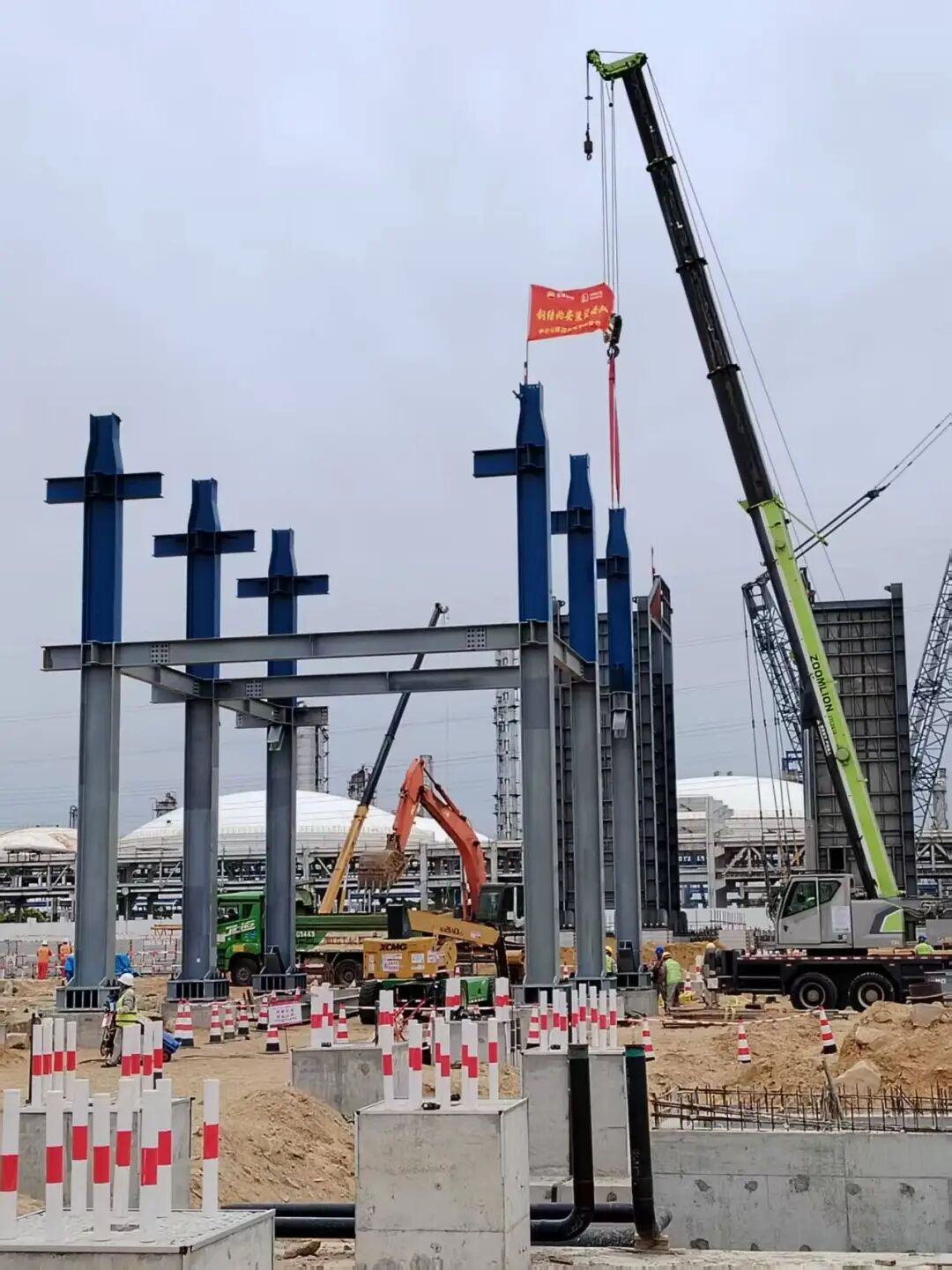 在天津南港乙烯项目,我们将高空作业最大程度“拉回地面”。高强螺栓连接板(非摩擦面)集中在地面完成油漆涂刷,在提升质量与工效的同时,减少高空作业频次,显著降低了安全风险。