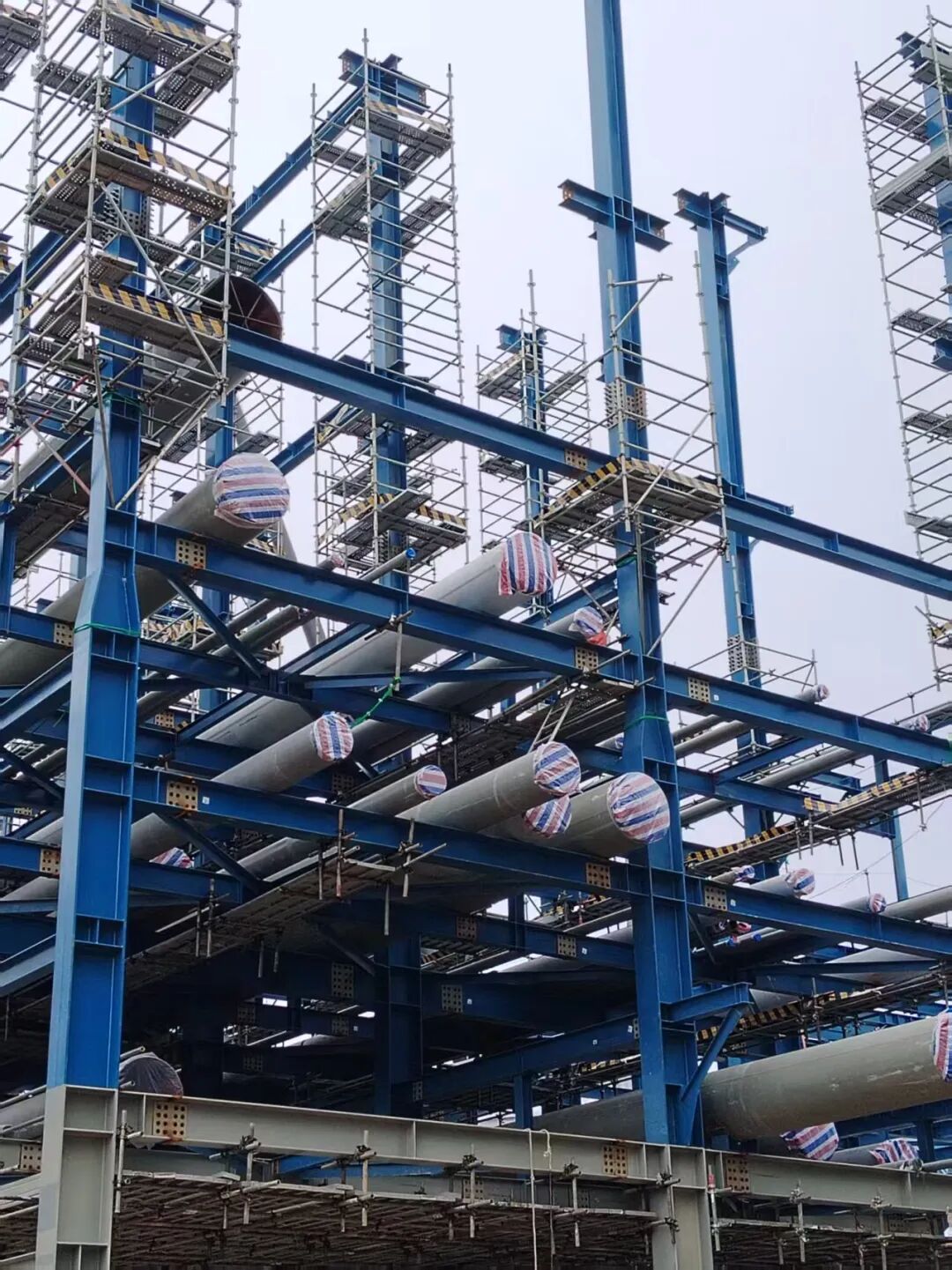 在天津南港、北方华锦、福建古雷、茂名石化等多个项目,实施大型塔器 “零尾项”安装:梯子平台设计优化、附塔管线、防腐保温、照明灯具等“穿衣戴帽、塔起灯亮”,大幅减少高空作业,实现“安装即完工”,获得工期、成本、安全三重收益。