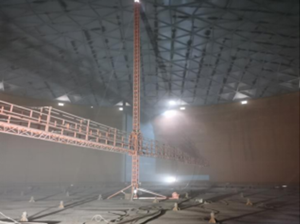 北海项目3万立方米拱顶储罐内防腐,创新采用自提升旋转平台,替代传统的满堂红脚手架,在受限空间内实现了更安全、更经济、更高效的施工作业。